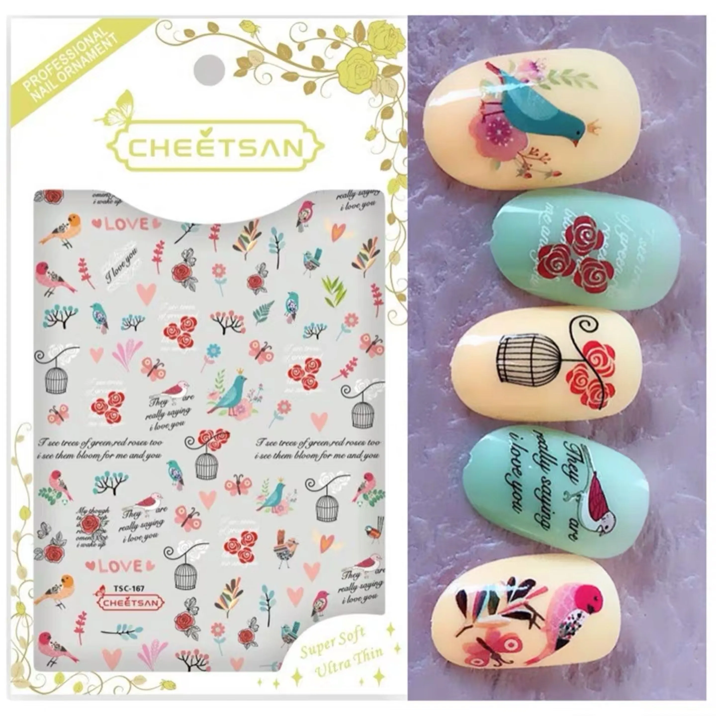 wonderful TSC-126-167 Cuckoo Magpie Owl 3D Back glue Nail decal Nail sticker Nail decoration Nail art Nail to
