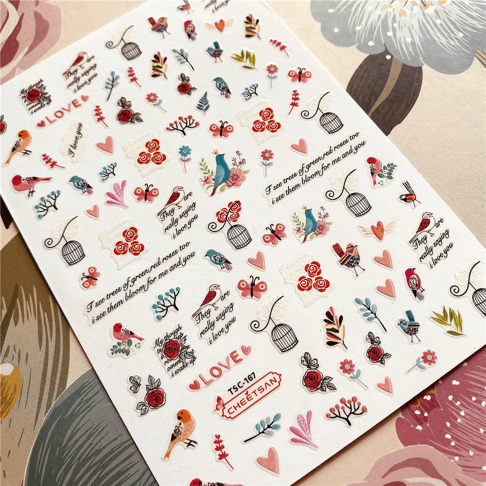 incredible TSC-126-167 Cuckoo Magpie Owl 3D Back glue Nail decal Nail sticker Nail decoration Nail art Nail to